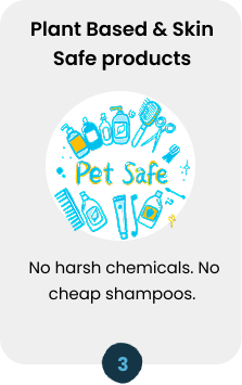 We use gentle, skin-safe, and plant-based products whenever possible. We avoid harsh chemicals and cheap shampoos that can irritate skin or overwhelm your pet with strong scents. If your pet has a specific skin condition, we can also use vet-recommended products provided by you.